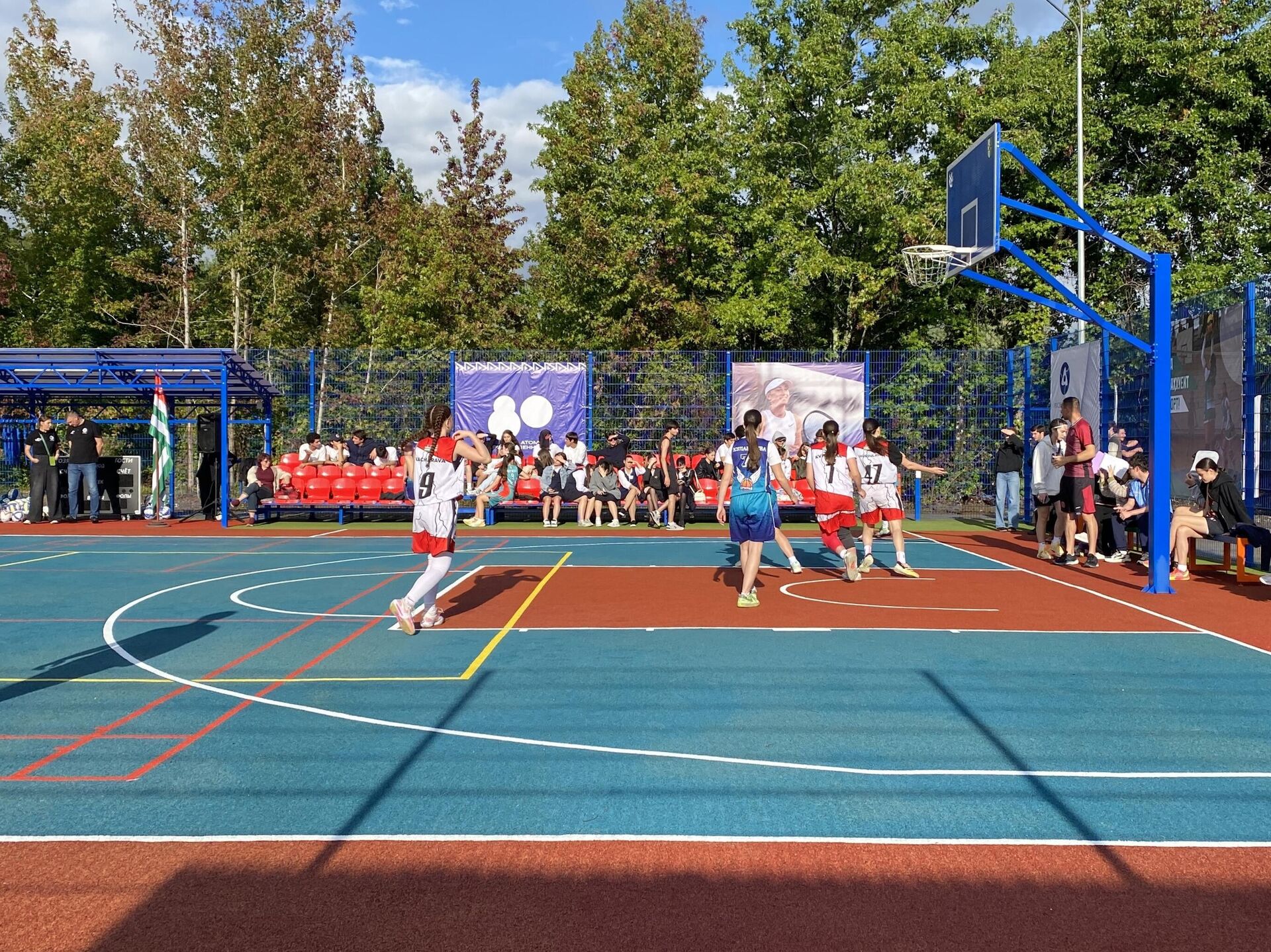 Современная спортплощадка, созданная РосАтомом, благодаря которой дети с удовольствием проводят уроки физкультуры и досуг на переменах